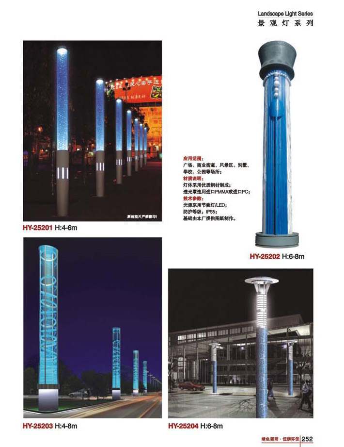 用途:景觀燈適用市政工程、園林亮化工程和公園、開發(fā)區(qū)、別墅區(qū)、廣場等戶外路燈照明工程