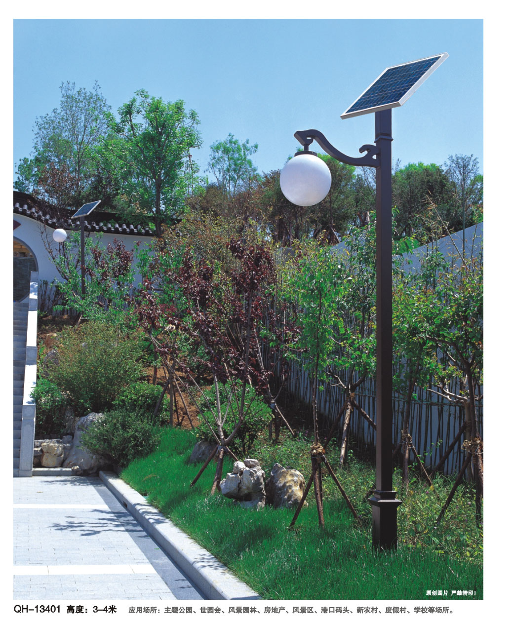 太陽能庭院燈QH-10301(簡約太陽能庭院燈)適用于公園、廣場、校園、市政道路等眾多場所,能夠起到非常不錯的照明與景觀功能,是照明工程優(yōu)質(zhì)優(yōu)選產(chǎn)品